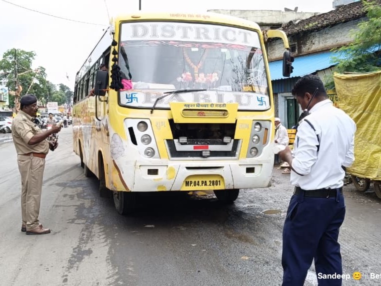 बैतूल में यातायात पुलिस ने शनिवार को सघन चेकिंग अभियान चलाया। पुलिस अधीक्षक निश्चल झरिया और अतिरिक्त पुलिस अधीक्षक कमला जोशी के निर्देश पर यह कार्रवाई की गई। यातायात प्रभारी गजेंद्र कैन के नेतृत्व में टीम ने गेंदा चौक, पेट्रोल पंप चौक और बस स्टैंड मे