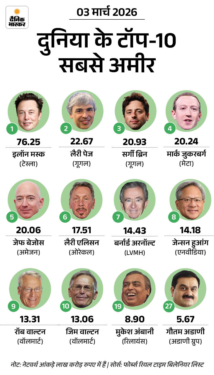 कल दुनिया के टॉप-10 सबसे अमीर कौन रहे यह भी देख लीजिए…