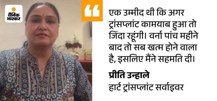मुझे नहीं पता था ट्रांसप्लांट के बाद जिंदा रहूंगी या नहीं: प्रीति साल 2001 में हॉर्ट ट्रांसप्लांट का नाम लेना भी भयावह था। प्रीति कहती हैं, ‘सफलता की संभावना नगण्य थी। भारत में जो कुछ मामले हुए भी थे, उनमें मरीज 0 से 1 साल तक ही जीवित रह पाते थे। 10 साल से ज्यादा जीने वाला कोई उदाहरण मेरे सामने नहीं था।’ परिवार के सामने एक बड़ा सवाल था, क्या इतनी जोखिम भरी सर्जरी की जाए?
