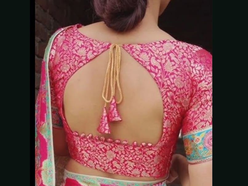 सिल्क साड़ी के साथ इस तरह का ब्लाउज डिजाइन काफी अच्छा लगेगा. पिंक कलर की इस खूबसूरत ब्लाउज के बैक पर गोल्डन ब्रोकेड पैटर्न है जिसकी वजह से यह साधारण होते हुए भी स्टाइलिश लग रहा है. यह डिज़ाइन खासकर त्योहार और पार्टी दोनों के लिए परफेक्ट है. बैक का यह कट-आउट लुक आपके ओवर ऑल लुक को अट्रैक्टिव बना रहा है.(pinterest)