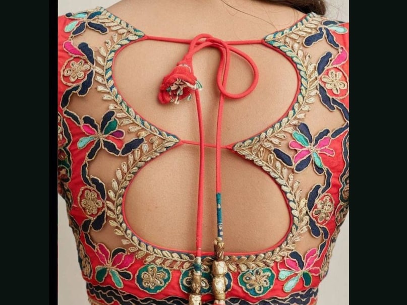 अगर आप अपने प्लेन साड़ी के साथ इस तरह की मल्टीकलर एम्ब्रॉयडर्ड ब्लाउज़ बनवाएं, जिसमें बैक पर दो कट-आउट और टाई डिज़ाइन हो तो यह डिज़ाइन पूरी तरह से ट्रेंडिंग और कमाल का लुक देगा. इसके बारीक एम्ब्रॉयडरी की गई है और गोटापट्टी भी लगाया गया है. वाकई में यह हरतालिका तीज के लिए पर्फेक्ट है. ( pinterest)