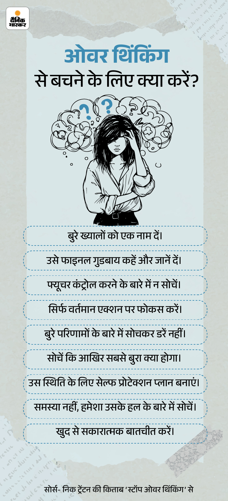 • ट्रिगर पहचानना: किन स्थितियों में आपका दिमाग जरूरत से ज्यादा सोचने लगता है, इसे पहचानना।