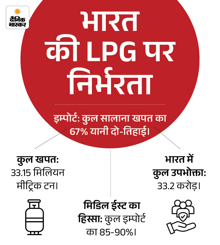 पिछले हफ्ते अमेरिका-इजराइल ने ईरान पर स्ट्राइक की थी। इसके जवाब में ईरान ने UAE, कतर, कुवैत और सऊदी जैसे देशों में मौजूद अमेरिकी ठिकानों को निशाना बनाया है। ईरान के ड्रोन हमले के बाद भारत को गैस सप्लाई करने वाले सबसे बड़े देश कतर ने अपने LNG प्लांट का प्रोडक्शन रोक दिया है। इससे भारत में गैस की सप्लाई घट गई है। भारत अपनी जरूरत की 40% LNG (करीब 2.7 करोड़ टन सालाना) कतर से ही आयात करता है।