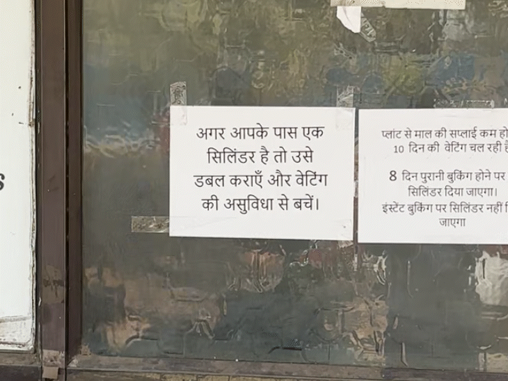 “प्लांट से माल की कमी होने से 10 दिन की वेटिंग चल रही है। 8 दिन पुरानी बुकिंग होने पर ही सिलेंडर दिया जाएगा। इंस्टेंट बुकिंग पर सिलेंडर नहीं दिया जाएगा।”