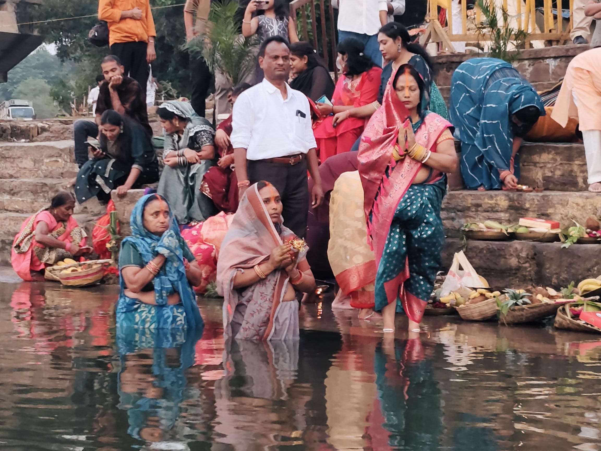 व्रतधारी महिलाओं ने पारंपरिक विधि-विधान से पूजा-अर्चना की। उन्होंने फल, फूल, ठेकुआ और आटे-चीनी से बने प्रसाद से सूर्य देव को अर्घ्य अर्पित किया। इस दौरान महिलाओं ने अपने परिवार की सुख-समृद्धि और खुशहाली की कामना की।