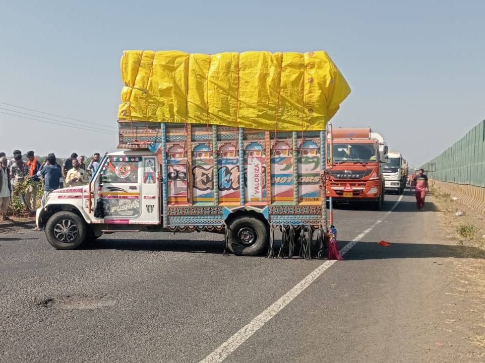 धार में नशे में पिकअप चालक का हाईवे पर हंगामा