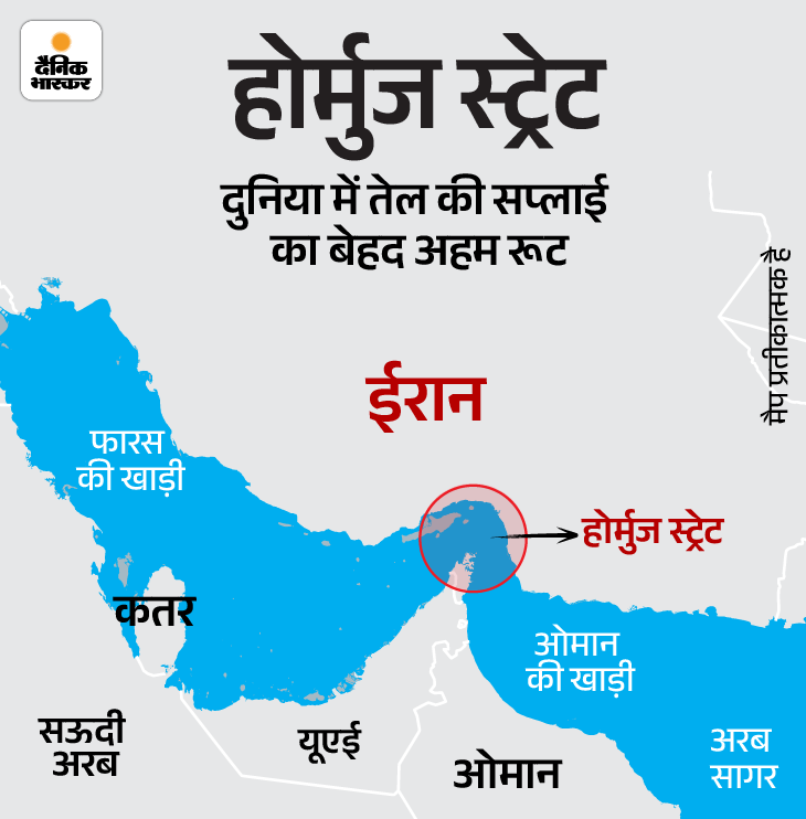 होर्मुज स्ट्रेट एक संकरा जलमार्ग है, जो फारस की खाड़ी को ओमान की खाड़ी से और आगे अरब सागर से जोड़ता है। इसके उत्तर में ईरान सटा है। दक्षिण में ओमान और संयुक्त अरब अमीरात यानी UAE है। इसके आसपास सभी तेल उत्पादक देश हैं। इसलिए इस जलीय रास्ते से दुनियाभर में तेल की सप्लाई होती है।