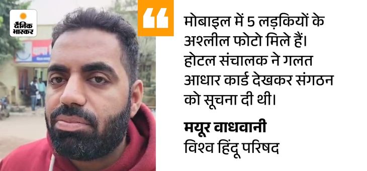 विहिप पदाधिकारी और कार्यकर्ता होटल पहुंचे और युवती को बचाया।