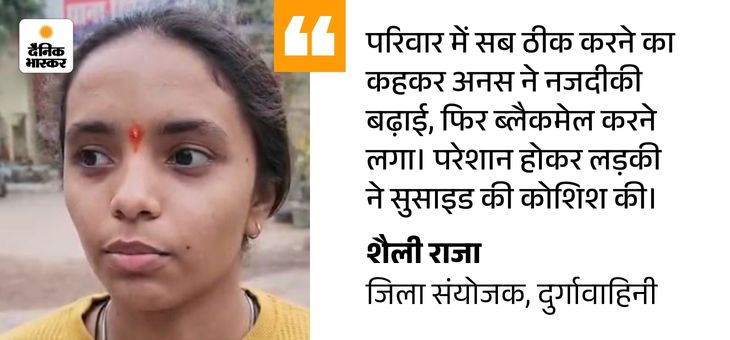 विश्व हिंदू परिषद की दुर्गा वाहिनी की जिला सह संयोजक शैली राजा ने बताया कि जिस लड़की को आरोपी होटल लेकर गया था, वह पिछले कई महीने से इनका शिकार हो रही थी। कुछ समय से यह काफी परेशान चल रही थी। मैं उसे जानती थी, इसलिए परेशानी का कारण पूछा। पहले तो उसने कुछ नहीं बताया, लेकिन जब बहुत परेशान हो गई तो एक दिन उसका सारा दर्द सामने आ गया। उसने मुझसे मदद मांगते हुए कहा- लड़का मुझे फिर से बुला रहा है। मैंने पूछा-कब। उसने आज की तारीख बताई। मैंने अपने परिषद के वरिष्ठों को पूरी बात बताई। लड़की को कहा- तुम जाओ, हम पीछे से आएंगे। इसके बाद हमने उसे पकड़ा और पुलिस को सौंप दिया।