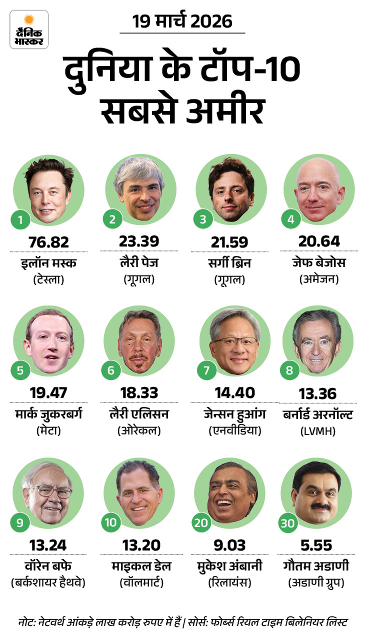 कल दुनिया के टॉप-10 सबसे अमीर कौन रहे यह भी देख लीजिए…
