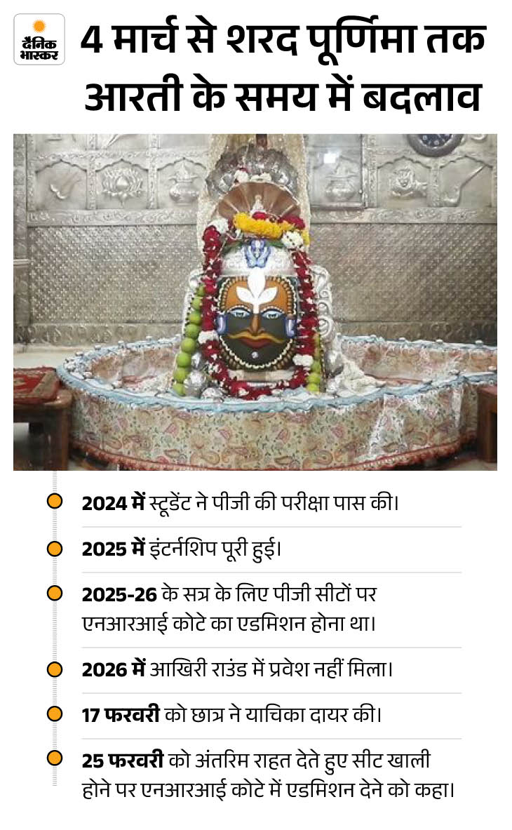 - 03 मार्च 2026, मंगलवार (फाल्गुन शुक्ल पूर्णिमा) को श्री महाकालेश्वर मंदिर की प्राचीन परंपरा अनुसार चंद्र ग्रहण के कारण श्री महाकालेश्वर मंदिर की पूजा पद्धति में परिवर्तन रहेगा।