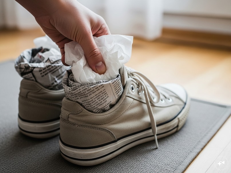 जूते जल्दी सुखाने की एक बेहद कारगर ट्रिक है अखबार या टिश्यू पेपर का इस्तेमाल. जूतों के अंदर सूखा अखबार या मोटा टिश्यू भर दें. यह नमी को तेजी से सोख लेता है और जूतों को अंदर से सूखाने में मदद करता है. अगर जूते ज्यादा गीले हों, तो कुछ घंटों बाद अखबार बदल दें. यह तरीका खासतौर पर स्पोर्ट्स शूज और कैनवास शूज के लिए काफी असरदार माना जाता है.