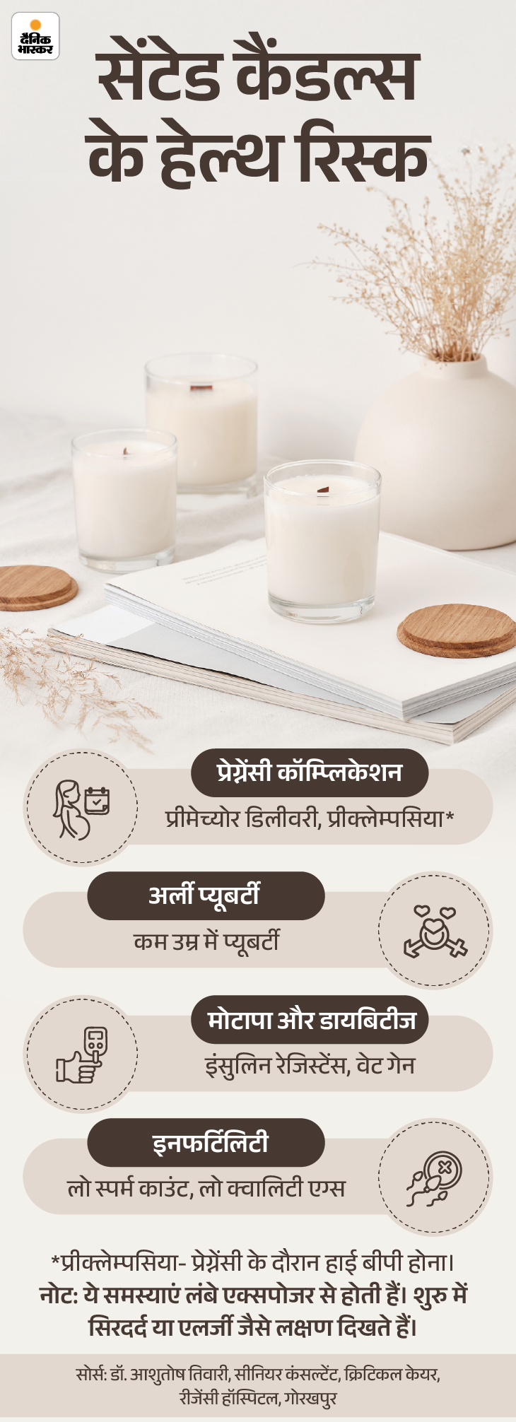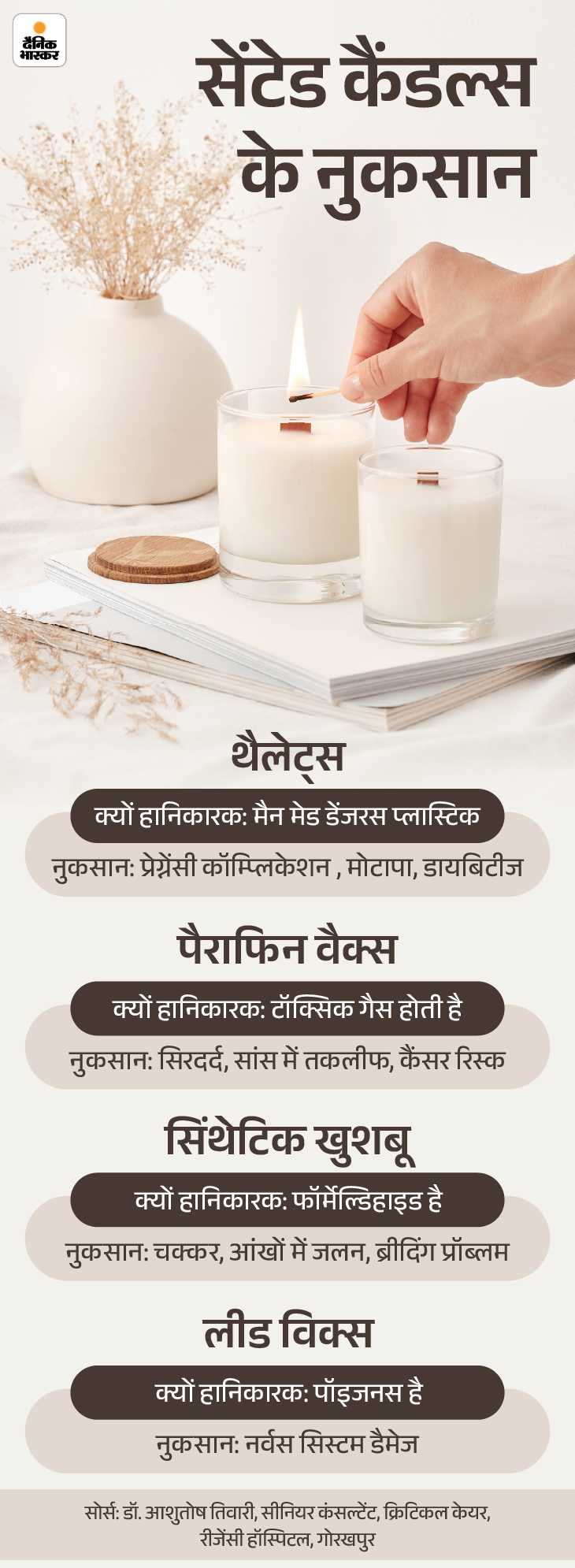 भारत में भी ये मोमबत्तियां बहुत पॉपुलर हैं। इनमें मौजूद थैलेट्स जैसे केमिकल्स एंडोक्राइन डिसरप्टर्स होते हैं, जो हॉर्मोन सिस्टम को बिगाड़ सकते हैं।