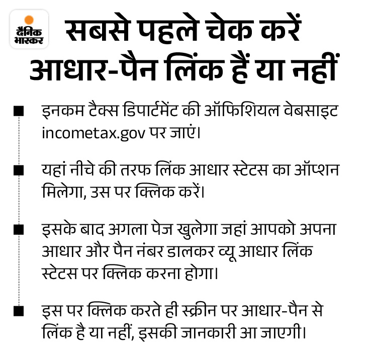 टैक्स एक्सपर्ट चार्टर्ड अकाउंटेंट (CA) आनंद जैन (इंदौर) के मुताबिक समय रहते आधार-पैन लिंक करने से कई परेशानियों से बचा जा सकता है।