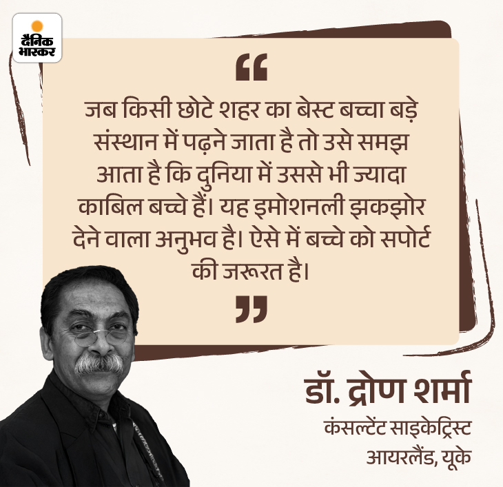 सवाल पूछने के लिए शुक्रिया। आपकी फिक्र वाजिब है। जब भी किसी छोटे शहर का कोई प्रतिभाशाली छात्र दिल्ली के सेंट स्टीफंस या आईआईटी जैसे बड़े संस्थान में जाता है तो उसे समझ में आता है कि दुनिया में उससे भी ज्यादा काबिल स्टूडेंट्स हैं। अपने छोटे शहर में वो बेस्ट था, लेकिन इस बड़ी जगह पर वो बेस्ट नहीं रहता।