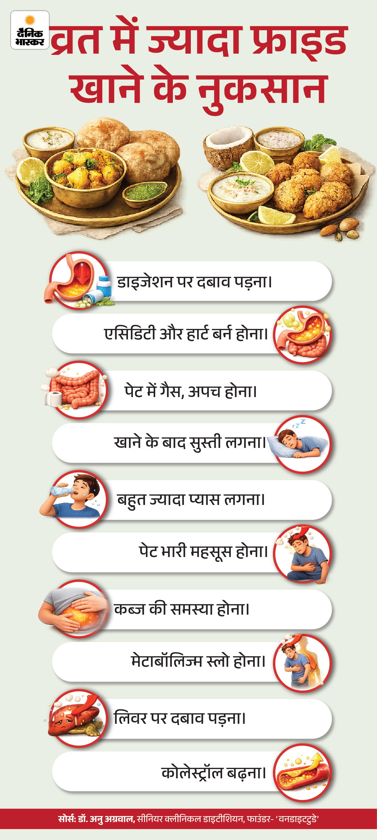 क्या करें- व्रत में एक साथ लंबे समय तक भूखे न रहें। हल्का खाना ही खाएं, लेकिन हर 2–3 घंटे में खाते रहें।