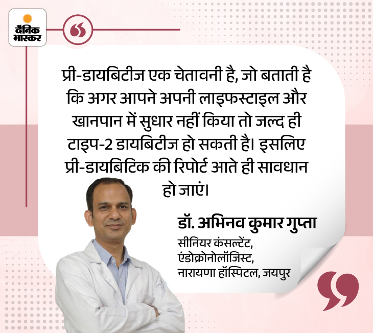 जवाब- एंडोक्रोनोलॉजिस्ट डॉ. अभिनव कुमार गुप्ता बताते हैं कि लाइफस्टाइल में बदलाव करके प्री-डायबिटीज में बढ़े शुगर लेवल को पूरी तरह रिवर्स किया जा सकता है। हालांकि कुछ रेयर मामलों में दवाओं की जरूरत पड़ सकती है।