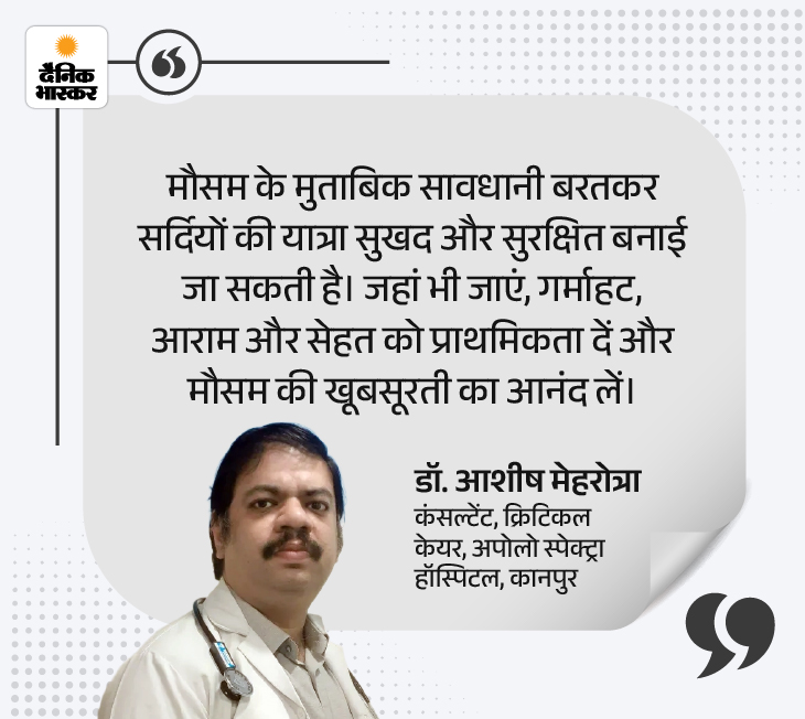 जवाब- हां, अगर सही कपड़े, गरम पानी और नियमित दवाइयां साथ हों तो यात्रा सुरक्षित रहती है। कमजोर इम्यूनिटी के चलते उन्हें भरपूर आराम और गर्माहट देना जरूरी है।