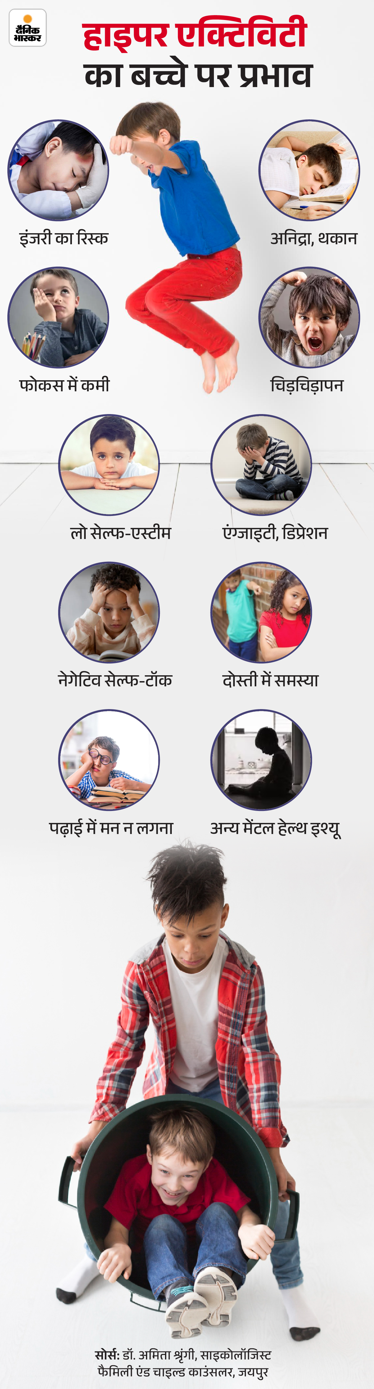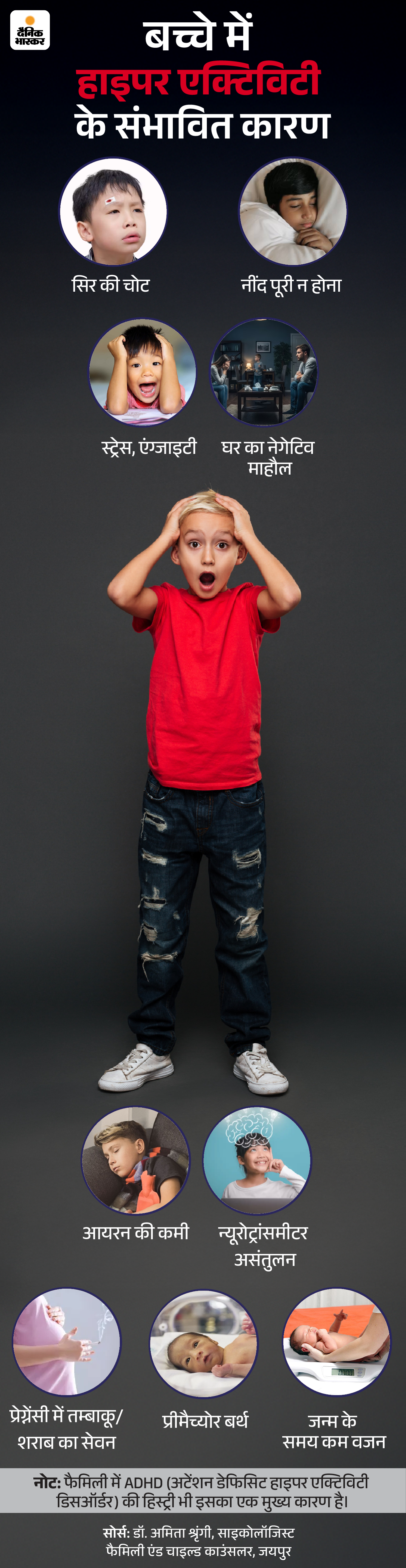 साइकोलॉजिकल और मेडिकल रिसर्च बताती हैं कि 3-6 साल की उम्र में हाइपर एक्टिविटी सामान्य है, लेकिन अगर इससे डेली लाइफ प्रभावित हो तो इसे मैनेज करने की जरूरत है। जल्दबाजी में काम करने की प्रवृत्ति, फोकस में कमी और हाइपर एक्टिविटी जैसे ADHD के लक्षण अक्सर 7 साल से पहले शुरू होते हैं। अगर इसे इग्नोर किया जाए तो स्कूल परफॉर्मेंस, सेल्फ-एस्टीम और रिलेशनशिप पर असर पड़ सकता है। तो आइए, स्टेप-बाय-स्टेप इस समस्या को ब्रेकडाउन करते हैं।