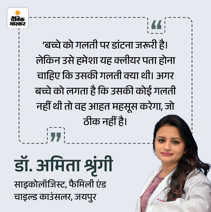 डांट तब असरदार होती है, जब वह किसी ठोस वजह से दी जाए और बच्चे को यह बात समझ भी आए कि उसे क्यों डांटा गया। अगर आप गुस्से में हैं, थके हुए हैं या किसी वजह से चिड़चिड़े हैं और उसी स्थिति में आपने रिएक्ट कर दिया तो बच्चा यह महसूस करता है कि गलती उसकी नहीं थी, फिर भी उसे झेलना पड़ा। इससे उसके मन में गिल्ट नहीं बल्कि दर्द और रिजेक्शन का भाव आता है।