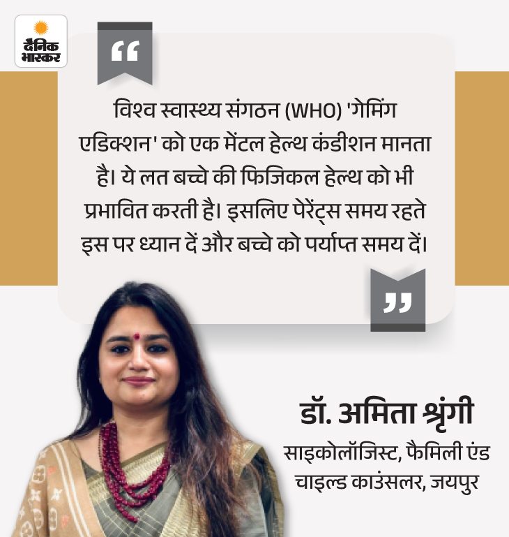 सवाल- मैं अजमेर से हूं। मेरा 15 साल का बेटा है। पिछले कुछ समय से उसे ऑनलाइन गेम खेलने की आदत हो गई है। वह रोज घंटों मोबाइल या कंप्यूटर पर गेम खेलता रहता है। हम दोनों वर्किंग हैं। जब वह छोटा था, तब अक्सर उसे मोबाइल पकड़ा देते थे ताकि वो व्यस्त रहे।
