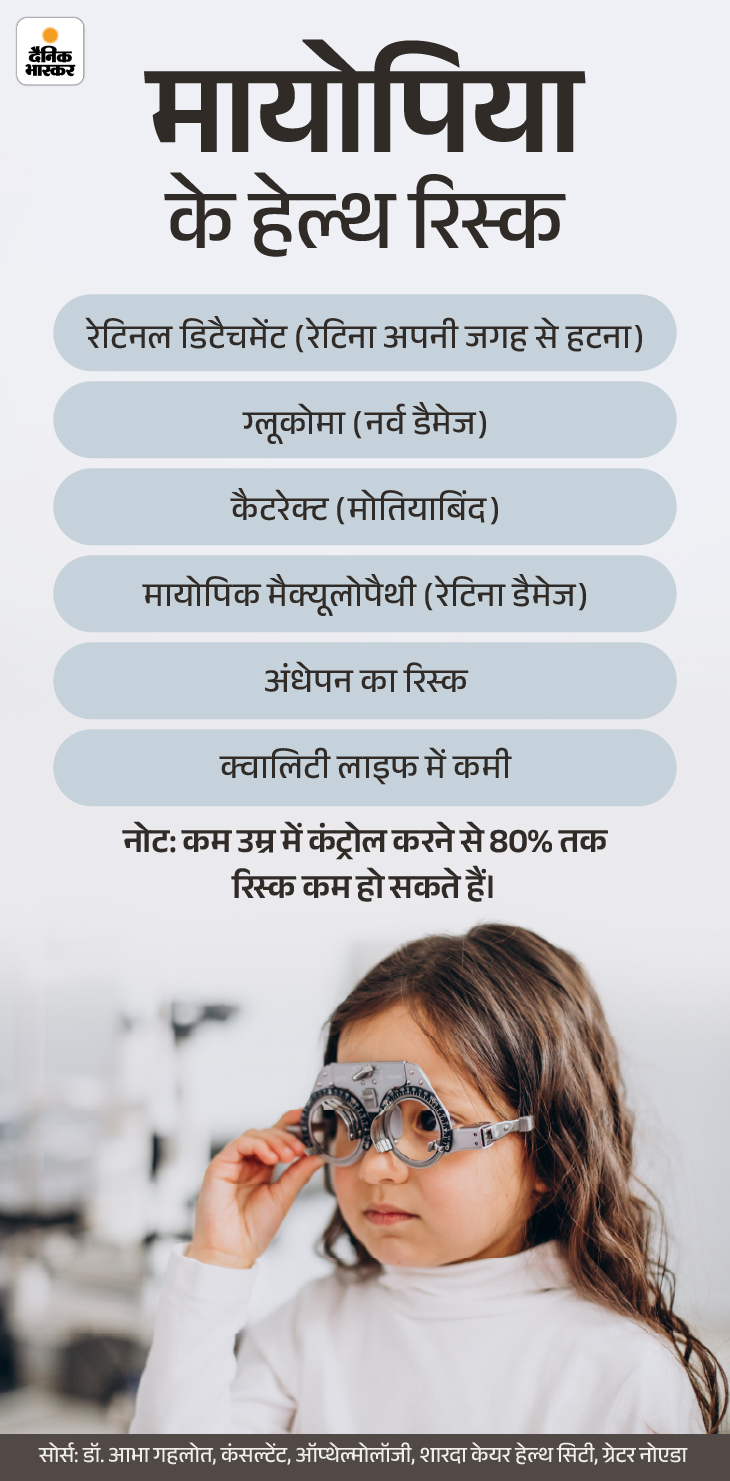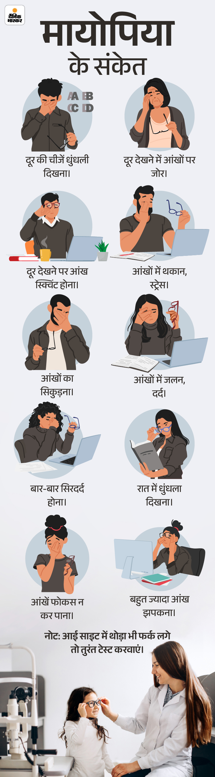 बच्चों में ये आमतौर पर 6-14 साल की उम्र में शुरू होता है और 20 साल तक बढ़ सकता है। पहले ये समस्या टीनएज में ज्यादा होती थी, लेकिन अब 5-10 साल के छोटे बच्चों में भी केस बढ़ रहे हैं। अगर इसे शुरुआत में ही कंट्रोल न किया जाए तो ये हाई मायोपिया बन सकता है, जो आंखों के लिए खतरनाक है।