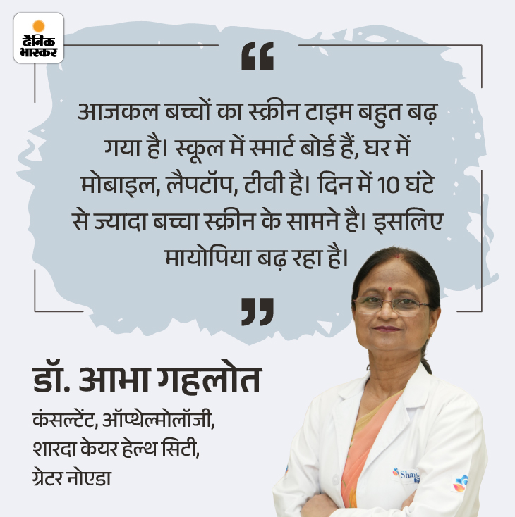 आजकल बच्चे स्क्रीन से चिपके रहते हैं। स्कूल में स्मार्ट बोर्ड, घर में मोबाइल-टीवी और होमवर्क के लिए लैपटॉप इस्तेमाल करते हैं। हफ्ते में 7 घंटे से ज्यादा स्क्रीन टाइम वाले दिल्ली के स्कूली बच्चों में मायोपिया का खतरा तीन गुना ज्यादा है। कंप्यूटर और वीडियो गेम इस्तेमाल करने वाले बच्चों में मायोपिया की दर 28.8% है।