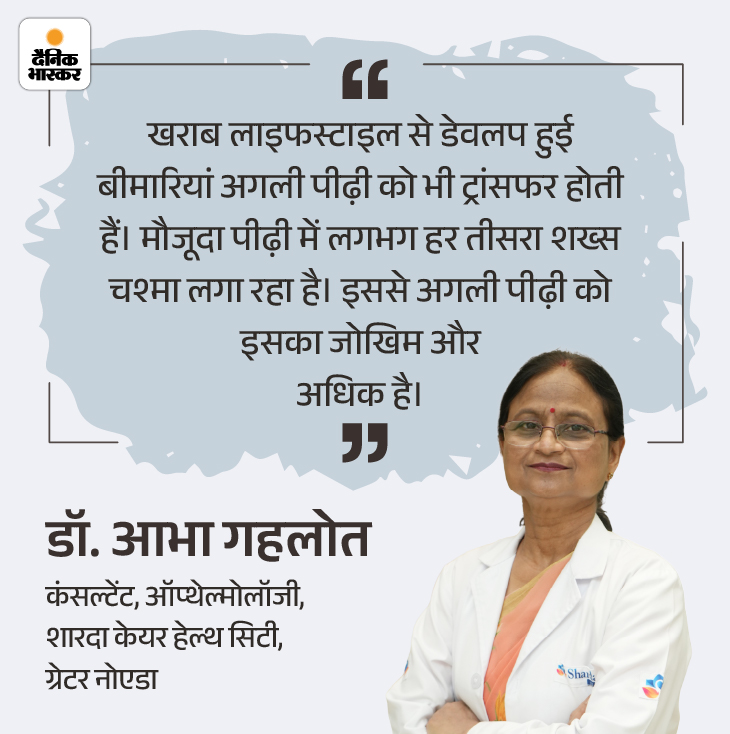 जेनेटिक्स भी रोल प्ले करता है। अगर माता-पिता में से किसी को मायोपिया है, तो बच्चे का रिस्क बढ़ जाता है। लेकिन पर्यावरणीय फैक्टर ज्यादा प्रभावी हैं। हमारे पूर्वजों की जीवनशैली यानी बाहर घूमना- फिरना, आंखों को स्वस्थ रखती थी। लेकिन आज की जेनरेशन स्क्रीन पर निर्भर है, जो अगली पीढ़ी को और प्रभावित करेगी।