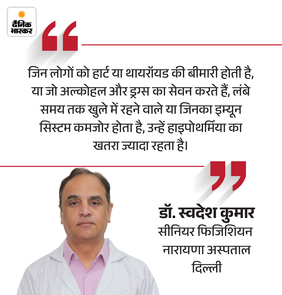 जवाब- सबसे ज्यादा खतरा बुजुर्गों, नवजात बच्चों और उन लोगों को होता है, जिनके पास पर्याप्त गर्म कपड़े या हीटिंग की सुविधा नहीं होती। मानसिक रोगियों या बाहर लंबे समय तक काम करने वाले लोगों में भी इसका जोखिम अधिक होता है।