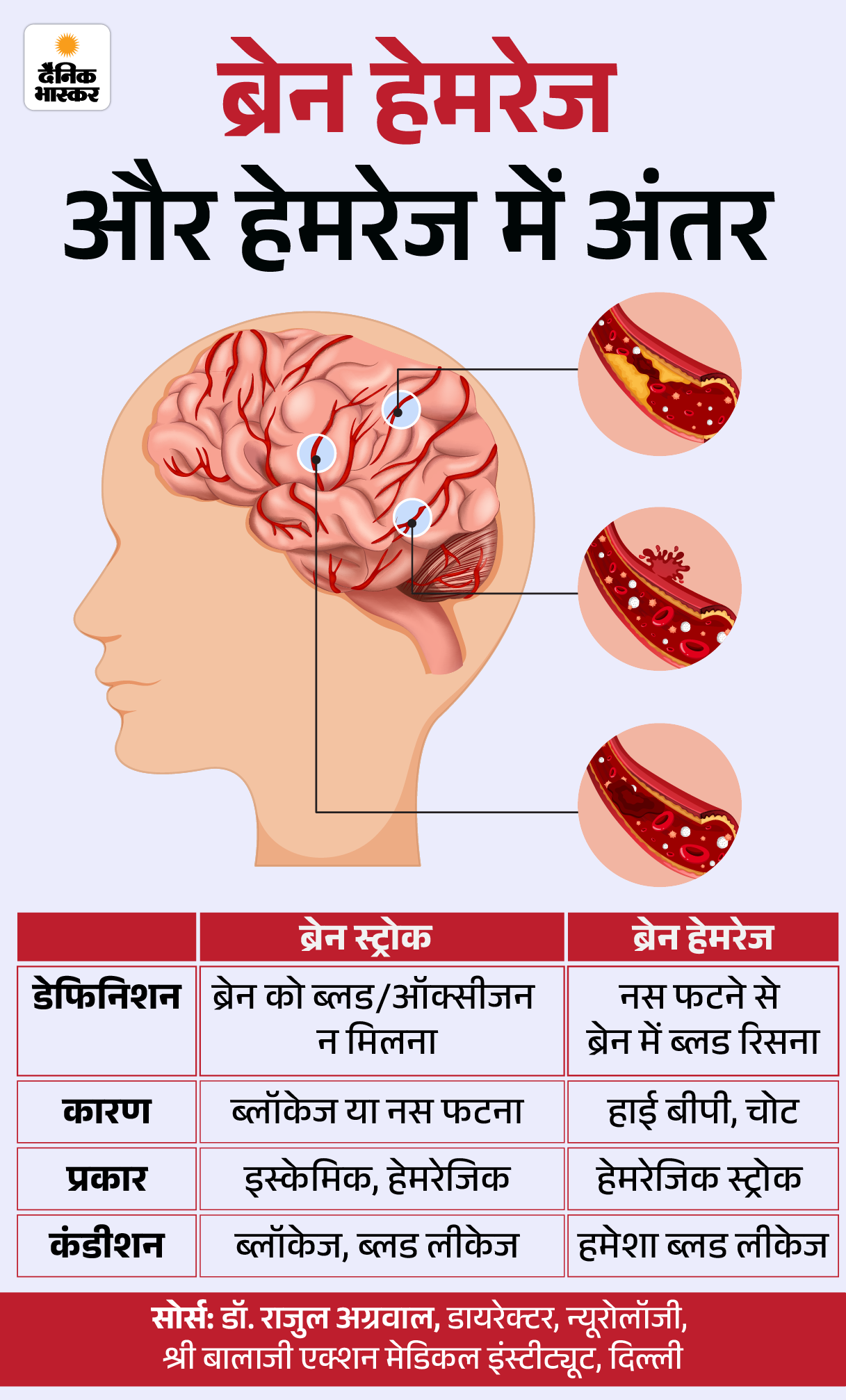 ब्रेन हेमरेज और स्ट्रोक के बीच फर्क ग्राफिक से समझिए-
