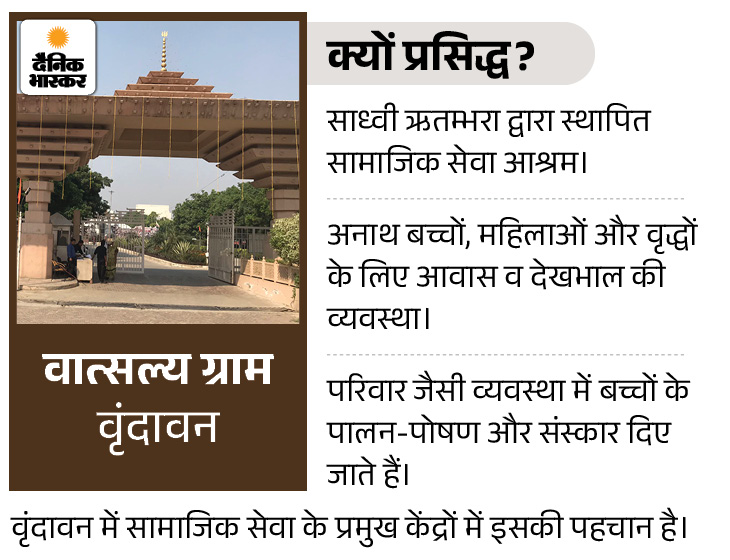 साध्वी ऋतम्भरा से करेंगी मुलाकात राष्ट्रपति रामकृष्ण मिशन हॉस्पिटल में एक घंटे रहने के बाद वापस होटल जाएंगी। दोपहर को आराम करने के बाद राष्ट्रपति शाम 5:10 पर साध्वी ऋतम्भरा के आश्रम वात्सल्य ग्राम जाएंगी। यहां वह पद्मश्री साध्वी ऋतम्भरा से मुलाकात करेंगी और उन बच्चियों से मिलेंगी] जिनका कोई अपना न होने पर वात्सल्य ग्राम में आश्रय दिया गया है। यहां राष्ट्रपति उन महिलाओं से भी मुलाकात करेंगी जो यहां दादी, नानी, मौसी बनकर बेसहारा बच्चियों के साथ रिश्ता निभा रही हैं।