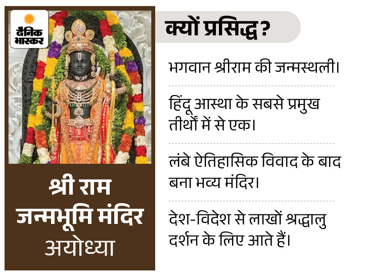 राष्ट्रपति मुर्मू अयोध्या में श्री राम जन्मभूमि मंदिर में दर्शन-पूजन करेंगी। श्रीरामयंत्र स्थापित करेंगी। मथुरा- वृंदावन में इस्कॉन और प्रेम मंदिर सहित कई प्रमुख धार्मिक स्थलों पर जाएंगी।