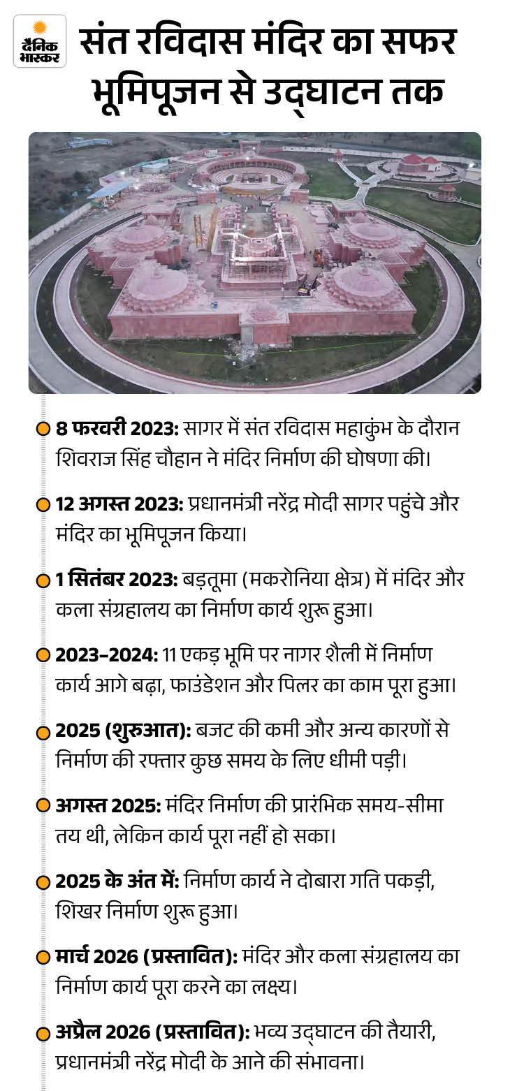 101 करोड़ का रविदास मंदिर, लोहा-स्टील बिना बनाया, ड्रोन वीडियो: 5 हजार साल टिकने वाला पत्थर; शिवराज की घोषणा, PM का भूमिपूजन, मंदिर 90% पूरा – Sagar News
