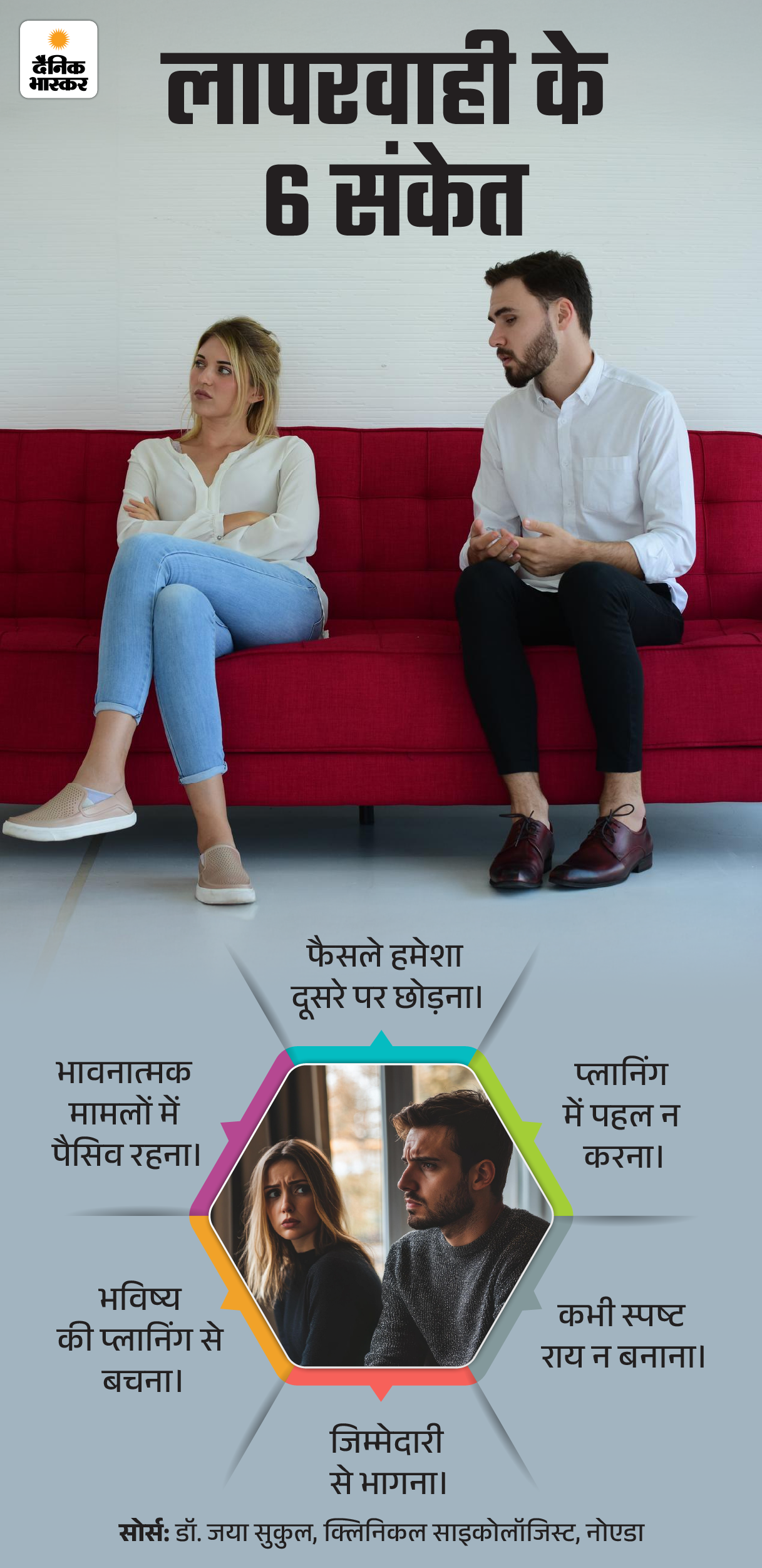 आपकी सिचुएशन में असली परेशानी ही यही है कि आपका पार्टनर खुद किसी बात की जिम्मेदारी नहीं उठा रहा है। रिश्ते में ऐसी इमोशनल पैसिविटी आगे चलकर बड़ी समस्या बन सकती है।
