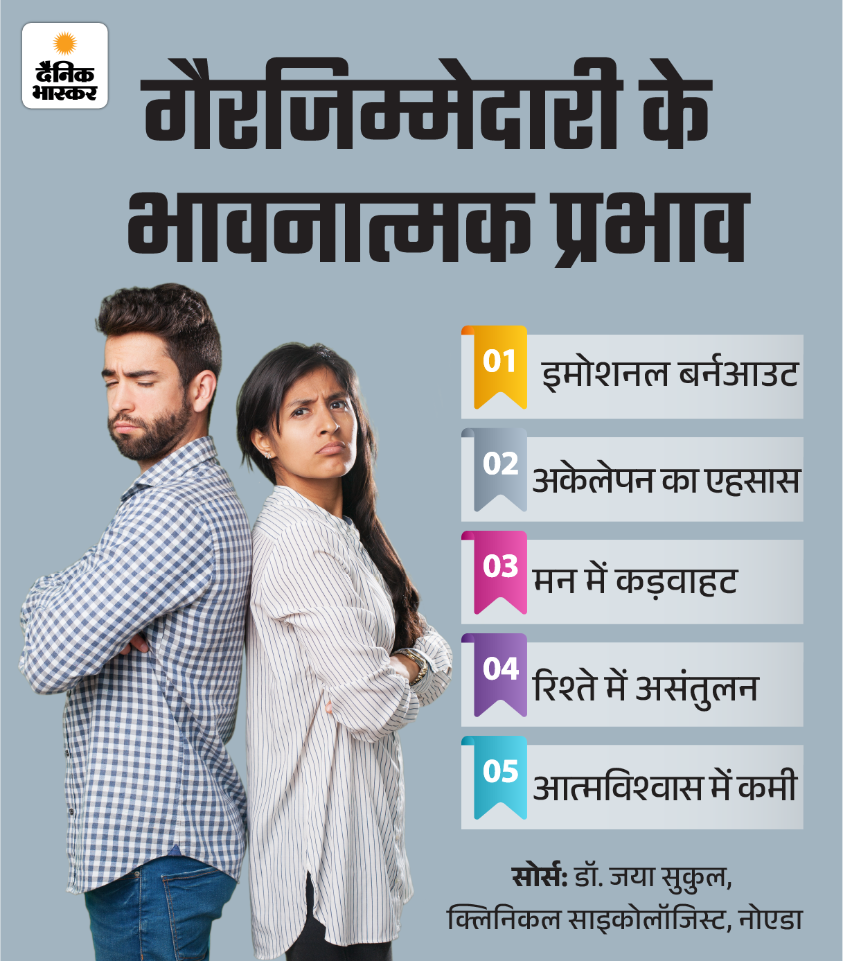 जब आप अपने पार्टनर के गैरजिम्मेदार रवैए के कारणों को समझेंगी तो नाराजगी सिर्फ व्यक्तिगत नहीं रहेगी। समझ का दायरा बढ़ेगा। लेकिन याद रखें, सिर्फ वजह जानना समस्या का हल नहीं है, पार्टनर के नेचर में बदलाव जरूरी है।