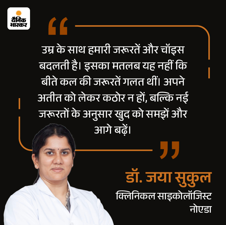 आपकी सबसे बड़ी समस्या खुद पर गुस्सा करना है। आपको बार-बार लगता है कि गलत फैसला लिया। लेकिन याद रखिए, उस वक्त आपको जो सबसे अच्छा लगा, आपने वो किया। खुद के साथ उतनी ही करुणा रखिए, जैसे किसी दोस्त के साथ रखतीं। सेल्फ-कम्पैशन से मेंटल हेल्थ बेहतर होती है और रिश्ते सुधरते हैं।