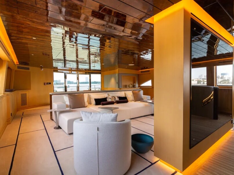 इस याट के अंदर का इंटीरियर इटली के फर्नीचर से सजा है. बड़ी-बड़ी सफेद सोफे और लकड़ी की पॉलिश वाली दीवारें इसे बेहद स्टाइलिश लुक देती हैं. अंदर की रोशनी और डिजाइन इसे किसी 5-स्टार होटल जैसा एहसास कराते हैं.