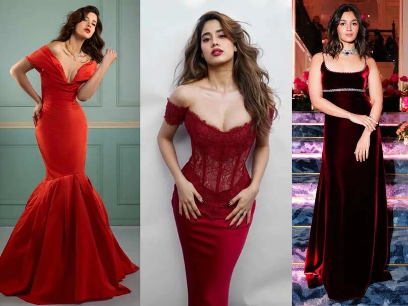 बॉडी-फिट रेड ड्रेस- इस तरह की ड्रेस शरीर के शेप को अच्छे से दिखाती है. यह ग्लैमरस और कॉन्फिडेंट लुक देती है. इसे पार्टी या कॉकटेल इवेंट में पहना जा सकता है.<br /><br />