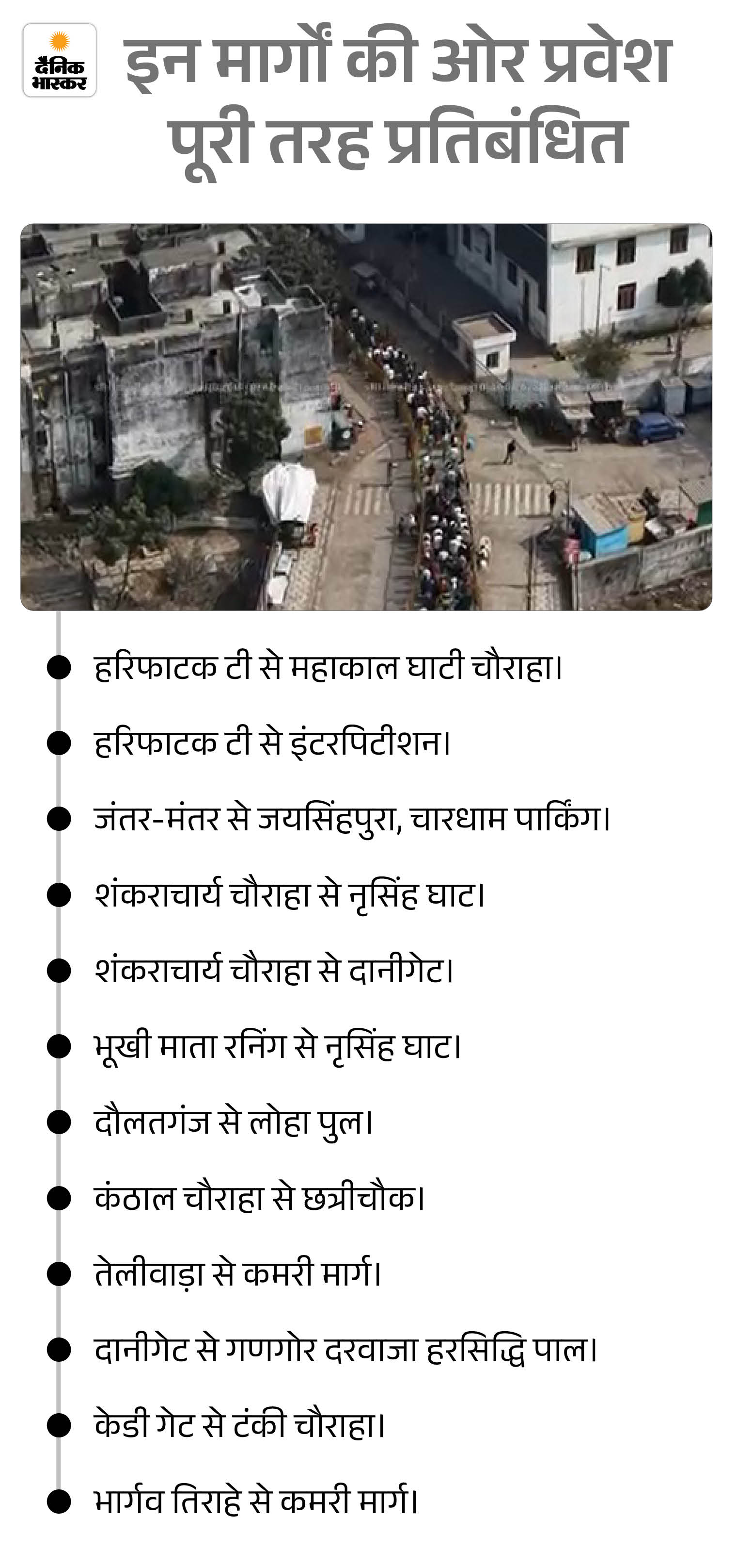 - मेडिकल हेल्प डेस्क एवं पीए सिस्टम- कर्कराज, भीलसमाज, चारधाम मंदिर पार्किंग, शक्तिपथ, त्रिवेणी संग्रहालय, श्री महाकाल महालोक, मानसरोवर भवन, फैसेलिटी सेंटर, हरसिद्धि चौराहा, नृसिंहघाट तिराहा, हरसिद्धि पाल पार्किंग, द्वार नंबर 5 पर की जाएगी।