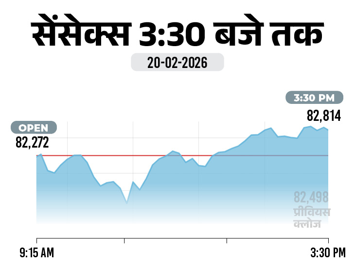 पिछले पांच कारोबारी सत्रों में सेंसेक्स 0.2% चढ़ा। वहीं शुक्रवार को यह 316 अंक यानी 0.38% चढ़कर 82,814 के स्तर पर बंद हुआ। वहीं, निफ्टी 50 इस हफ्ते 0.4% मजबूत हुआ। शुक्रवार को इसमें 117 अंक यानी 0.46% की तेजी आई और यह 25,571 पर बंद हुआ।