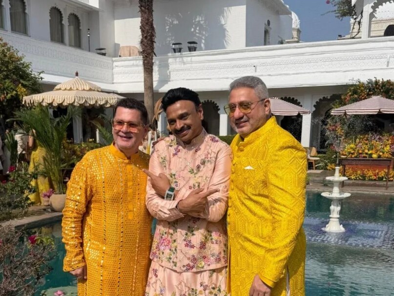 इस तस्वीर में मेवाड़ के पूर्व शाही परिवार के सदस्य लक्षयराज सिंह मेवाड़, नेत्रा मंटेना और वामसी गड्डीराजू की उदयपुर में हुई रॉयल शादी में Wizcraft के सह-संस्थापक और निदेशक के साथ नजर आ रहे हैं. (PTI)